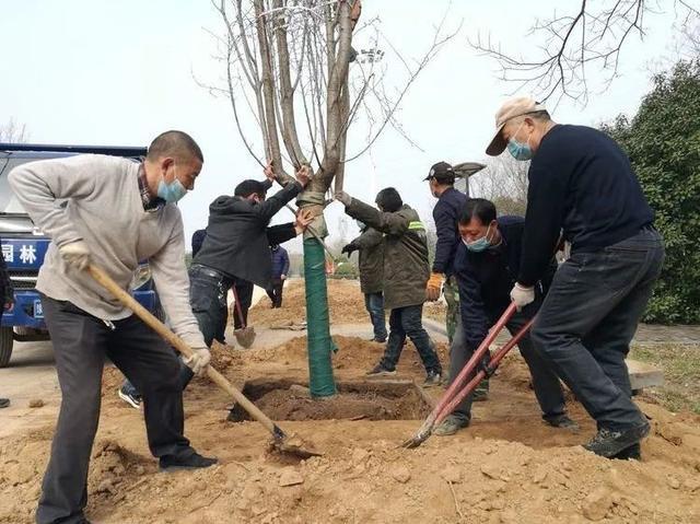 在种植现场,园林工人们按照技术规范,四五个人一组,吊运、栽植、回填、压实、打支撑,将胸径15cm、高5.5m6m的樱花,小心翼翼地放入挖好的树池中。随后将做好浇水、树池石安装、疏枝等,加强日常养护管理。