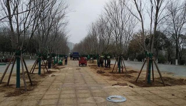 截止目前,100余米的“樱花大道”上,37棵大樱花已种植完毕。