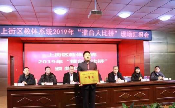 1月14日下午,上街区丹江路小学会议室气氛热烈,该区教体系统2019年“擂台大比拼”现场汇报会在这里举行,全区教体系统17个单位的负责人,通过公开演讲和PPT展示,晒亮点、比发展、谈谋划,接受考核。   “2019年已经过去,教体系统各单位全年目标到底抓得怎么样、推进得怎么样,有必要进行一次全面公正的考核评价。”上街区教体系统负责人介绍说,组织“擂台比拼”,就是要让各单位站到台上来,亮工作、晒成绩,比干劲、比形象,接受干部和群众的评判与监督,进一步形成比学赶超抓工作、动真碰硬转作风的良好氛围。   据了解,此次擂台比拼主要考核教体系统各单位2019年工作完成情况,分“实地考核”和“现场汇报演说”两个阶段进行。以百分制计分,实地考核占75分,现场陈述占25分。2019年12月27-31日,该区教体局组织3个考核组,对各参赛单位2019年主要工作情况和亮点工作进行了实地考核。1月14日举行的是现场汇报会,每个单位负责人演说结束后,由上街区分管教育的县处级领导以及教体局班子组成的评审组进行现场打分。   “一年来,外国语小学紧紧围绕‘两提升,双一流’总体目标,以‘五名工程’、‘ 五风建设’双线统一为抓手,以尚雅教育理念为引领,以英语特色为龙头带动融合各科协调发展……”   “2019年,实验初中狠抓‘五风建设’,力铸‘五名工程’。全力打造‘孩子向往,教师幸福,家长满意’的魅力教育实验校……”   17家参加擂台大比拼的单位负责人围绕2019年工作开展情况及2020年工作谋划进行了汇报演说。评审组现场打分,成绩当场公布。经过综合评分,郑州北大培文学校高中部获得一等奖,上街实验高中、郑州第二外国语中学获得二等奖,上街实验初中、中心路小学、丹江路小学获得三等奖,新建小学、实验小学、教科研中心、上街区幼儿园获得特殊贡献奖。   上街区教体局局长杨晓东认为,“擂台大比拼”,比出了成绩,锻炼了干部。“通过实地观摩、现场汇报,更直观地展示了全区教育工作成绩,更充分地彰显了我们教体系统领导干部的素质能力。激发了领导干部谋划工作、聚焦主业的主动性,大家的工作思路更加清晰,措施更加有力,干事创业的积极性更高。”他希望获奖单位能够再接再厉、再创佳绩,也希望其他单位特别是排名落后的单位主动向先进学习,迎头赶上。   2019年,上街区教体系统各单位认真贯彻落实立德树人根本任务,全力打造人民满意的教育,取得了良好成绩。优质均衡发展实现新突破,上街区实验高中、实验初中、实验小学、实验幼儿园成为北京实验学校魅力教育实验校,先后赴北实跟岗学习百余人;上街区丹江路小学与北京新学道教育集团深入交流合作,各类课程扎实落地,学生素质显著提升。教育信息化实现新突破。教育信息化工作今年在全省电教工作会议上工作经验得到交流,并被市政府孙晓红副市长批示专期刊发;上街区成为“腾讯智慧校园”全省首批试点区,率先实现全省唯一的全域全覆盖;投资400万在区属初高中和实验小学建设AI人工智能项目,服务学校管理;实验初中被评为河南省数字校园标杆校。体育事业实现新突破。圆满承办全国围棋赛事和全省棒垒球体育赛事;10所学校(幼儿园)被评为全国足球特色校;投资11万元为全区破损的全民健身器材进行更新维修,保障全区居民健身需求和安全;投资113.5万元为新建小区、老旧小区和其他需要健身器材的小区安装近300件健身器材,新增4处室内健身室。创新服务实现新突破。打造民办教育机构党群服务中心,相继开展家庭教育知识讲座等多项公益活动,为群众提供学习活动平台,采取主动进社区、微信网上报名的形式进行小学招生,切实方便了群众。