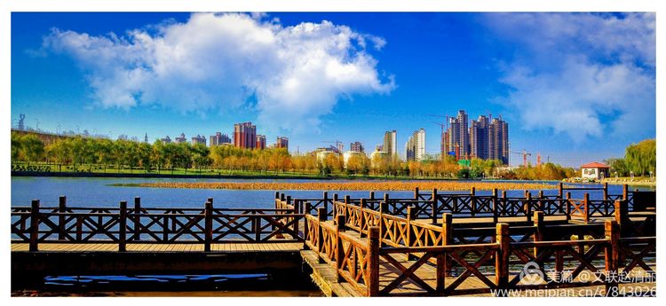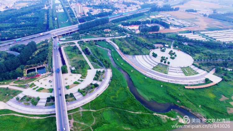 飞桥铺架近游园,一水两绿几多蓝。顺河习习薰风吹,芳草萋萋鸣鸟欢。绿荫蔽暑柳丝舞,茵毯佳木百花观。情侣徜徉老少怡,临境如入伊甸玩。(镜嵩)
