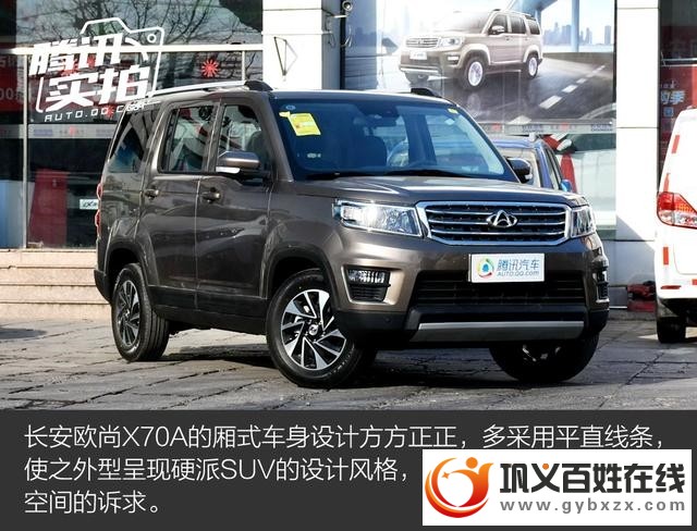 长安欧尚X70A的厢式车身设计方方正正,多采用平直线条,使之外型呈现硬派SUV的设计风格,同时也满足了消费者大空间的诉求。前脸采用多横条幅格栅与大灯一体化的横向设计,从视觉效果上增强了车体宽度。六边形镀铬中网内以黑色的蜂巢造型点缀。带有透镜的前大灯采用了远近光分体式设计,并支持大灯高度可调。内侧为远光,采用反光碗设计;外侧为带有透镜的近光灯,均采用卤素光源,符合该车的价位配置。格栅下部的贯穿式保险杠刚好将前脸分为上下两部分,下面的黑色塑料格栅下端设计了银色的防擦板,比较具有SUV车型固有的运动范儿。其两侧功能区设置有长条状雾灯,值得一提的是,雾灯区域下方的黑色包围上设有雷达,充分体现了厂家的诚意。
