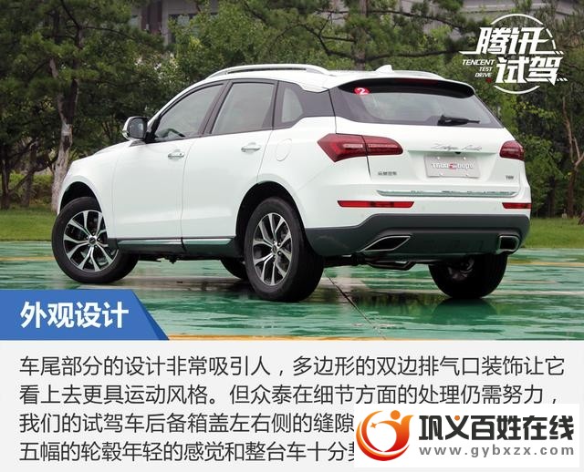 车尾部分的设计非常吸引人,多边形的双边排气口装饰让它看上去更具运动风格。但众泰在细节方面的处理仍需努力,我们的试驾车后备箱盖左右侧的缝隙还是有些许差异的。双五幅的轮毂年轻的感觉和整台车十分契合。 |