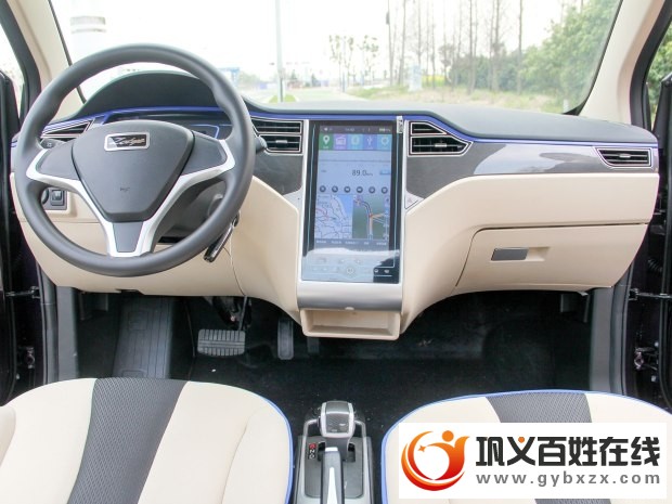 相比芝麻E30,众泰芝麻在车内的变化也不多,同样是增加了一些蓝色装饰条,平整的内饰设计风格以及空调出风口造型都与特斯拉有些类似。此外,中间的10.1英寸的屏幕十分抢眼,也是整车最大的亮点。而在配置方面,中控屏幕集成了蓝牙、倒车影像以及GPS导航等功能。