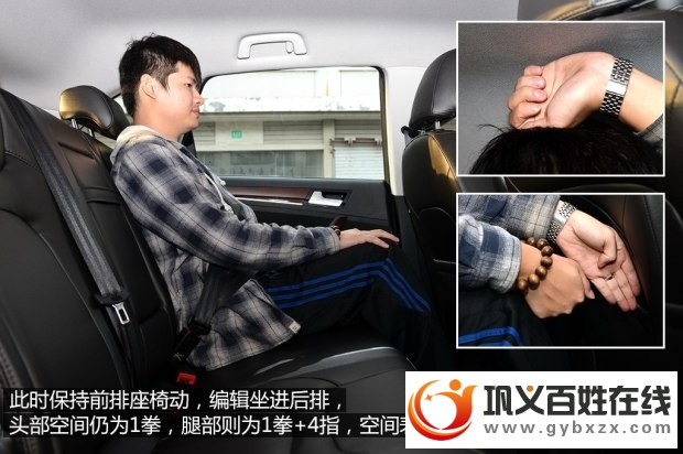 众泰T600一直拥有宽敞的乘坐空间,这优良传统在2.0T车型上继续延续(下图为1.5T车型)。身高180cm的体验者在前排和后排均可获得1拳头部空间,在后排腿部空间则为1拳4指,表现相当不错。